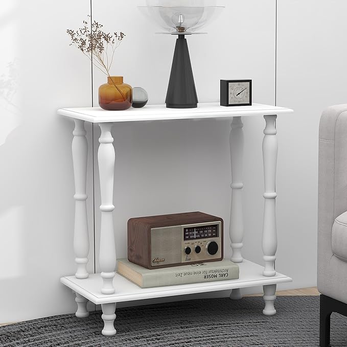 TaoHFE White Narrow Side Table Wooden Vintage End Tables Living Room French Style 24 Inch Sofa Side Table with Open Shelf 2-Tier Retro Bedside Table for Bedroom Living Room Small Space, White
