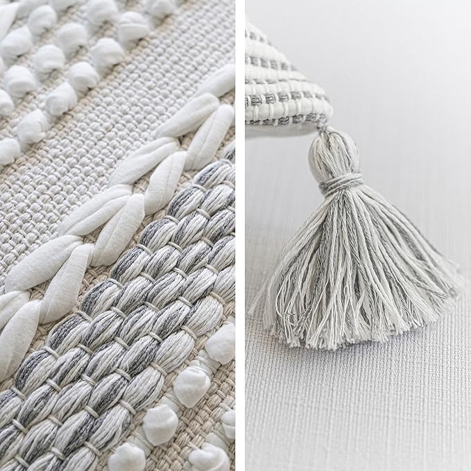 BlissBlush Gray Decorative Throw Pillow Cover 20X20, Boho Accent Pillow for Couch, Square Modern Farmhouse Pillowcase for Living Room Couch Sofa Cushion Home Décor (Pack of 1)