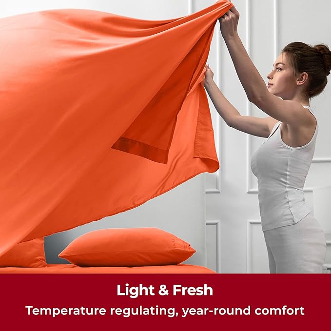 Mellanni Twin XL Sheets Set - 3 PC Iconic Collection Bedding - Hotel Luxury, Extra Soft, Cooling Bed Sheets - Wrinkle, Fade, Stain Resistant (Twin Extra Long, Poppy Orange)