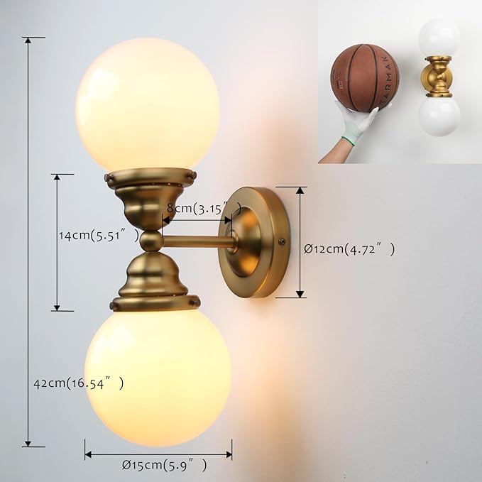 - [Product Dimensions]: 5.9inches(Shade Diameter) x 16.54inches(Height); 3.15inches metal arm; 4.7inches wall mount base. Suggested Space Size: 20-30Sq.m. Up and Down Lighting.