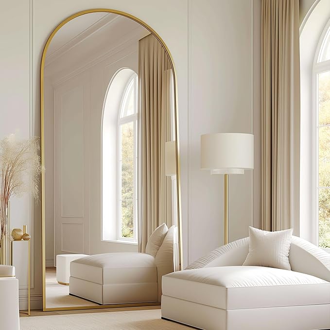TinyTimes 76''x34'' Arched Floor Mirror, Full Length Body Mirror with Stand, Modern & Contemporary Design, Aluminum Alloy Frame (Gold)