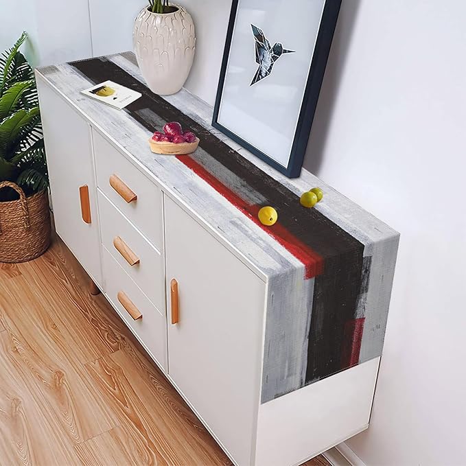 Emvency Black and White Table Runner, Modern Grey Red Art Painting for Kitchen Coffee Table Family Dinners Holiday Parties Wedding Events Decor(13x108 inch)