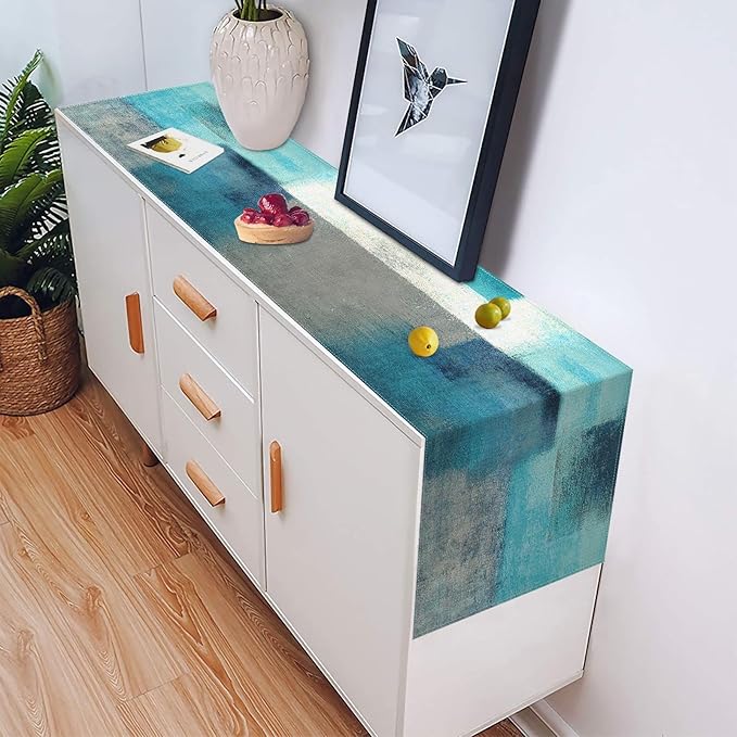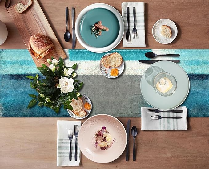 Emvency Farmhouse Table Runner, Modern Teal and Grey Abstract Art Painting for Kitchen Coffee Table Family Dinners Holiday Parties Wedding Events Decor(13x60 inch)