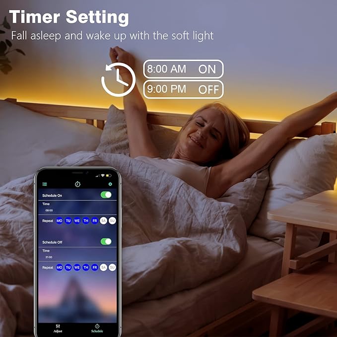 - Easy to DIY: Self-adhesive tape makes it easy to stick on clean, dry surface, also you can install it with screws(included). These LED strips can be bent at any angle, the cutting functions give you great flexibility to achieve the length and shape you want