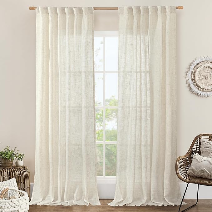 LAMIT 102 inch Long Linen Curtains 2 Panels for Living Room, Natural Cream Ivory Light Filtering Semi Sheer Linen Curtains Back Tab and Rod Pocket Neutral Drapes for Bedroom/Farmhouse, 52 x 102 Inch