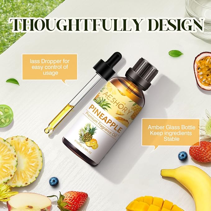 - 【3.38FL.OZ Pineapple Essential Oils】Natural Pineapple oil undiluted, no additives, no fillers. Amber Glass Bottle with Premium Glass Dropper, keeps our essential oils from sunlight, and the dropper is convenient and easy for you to blend with other essential oils or carriers without any waste.