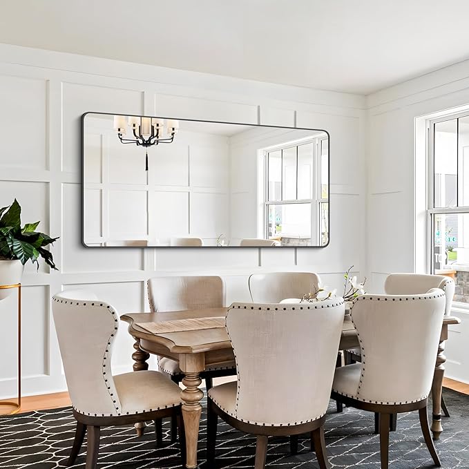 FORBATH Bathroom Mirror 30" X 60",Large Rectangular Wall Mirror, Black Metal Framed Rounded Corner Wall Mounted Mirror for Bathroom Bedroom Entryway Decor(Horizontal/Vertical)