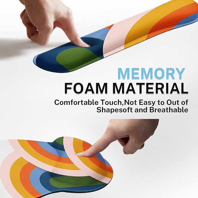 Britimes Ergonomic Mouse Pad Set with Wrist Rest Abstract Rainbow Non-Slip Rubber Base Wrist Cushion Support and Coasters Mousepad with Wrist Support for Computer Keyboard and Desk