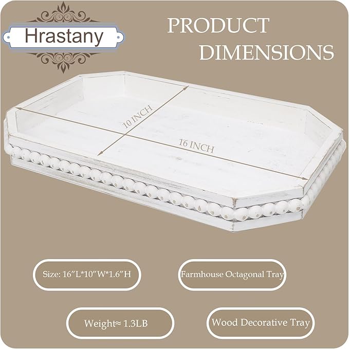 - Style Choices Galore: Choose from a variety of chic designs and colors to match your aesthetic- including washed white, vintage black, burnt wood, wood color, light brown, and dark brown. With beaded detailing, these lightweight wooden trays come in various shapes - long octagonal, regular octagonal, square, rectangular, round and oval.