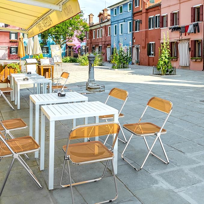 VINGLI Acrylic Folding Chairs 4 Pack, Clear Chair Foldable and Stackable, Plastic Panel & Metal Chrome Frame, Weight Capacity 350 lbs, Orange