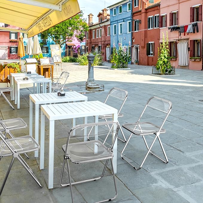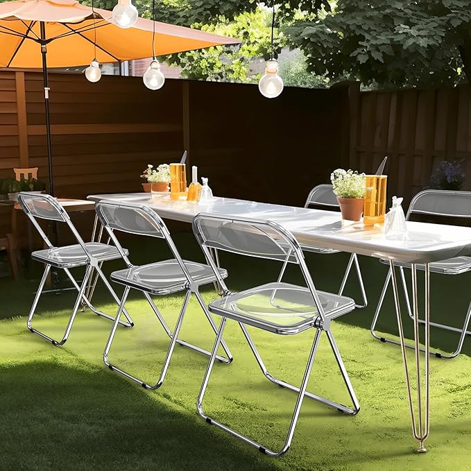 - Easy to Use: They can be easily opened and closed in seconds.The acrylic material used for the chairs is easy to clean and maintain, making them a great choice for high-traffic areas. They can be easily folded or stacked and stored away when not in use, saving you valuable space.