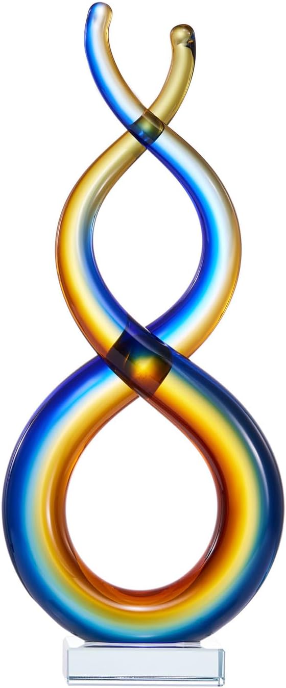 Luxury Lane Hand Blown Wave Sommerso Art Glass Scultpure 14.5 inch Tall