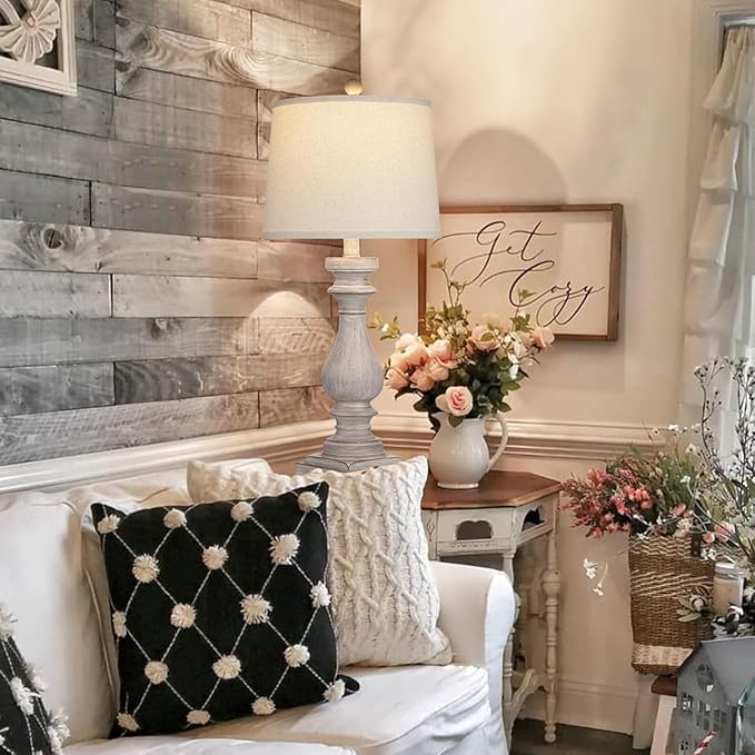 - 【Farmhouse Rustic Retro Table Lamp】- The stable and sturdy resin body is perfectly matched with the cylindrical oatmeal shade, creating an elegant ambience,easy to fit in most decor for modern,classic,rustic,industrial,retro,nordic.Each lamp is 27.5'' high, 12.5'' long and 12.5'' wide, perfect for living room,bedroom,foyer,hallway,dining room,office,study and any room you like.