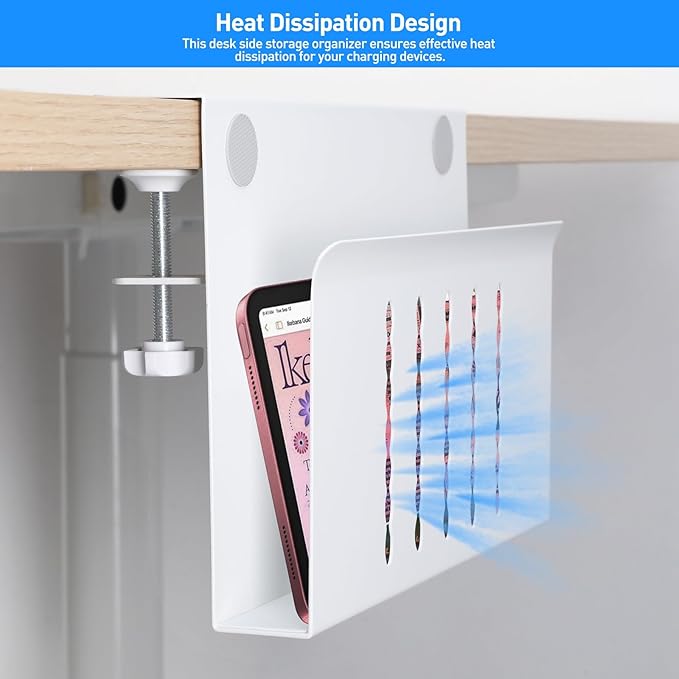 - 【High Quality Material】This metal side hanging desk organizer is crafted from high quality iron. This sturdy under-desk laptop holder supports up to 22lbs and can be paired with magnetic cable holders, USB hubs, and other devices.
