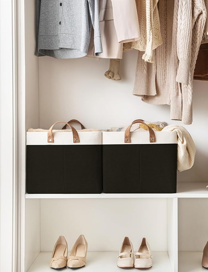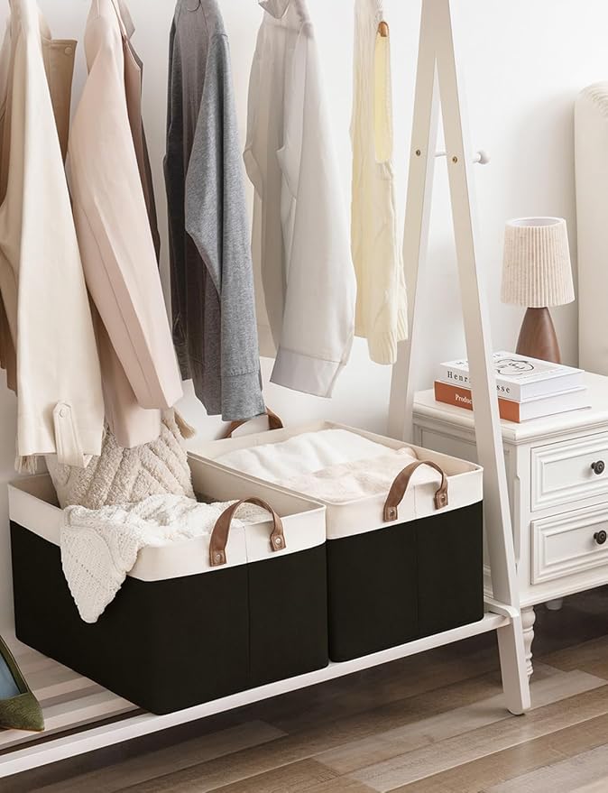 StorageWorks Storage Bins, Fabric Storage Bins for Shelves, Extra Large Storage Baskets with Metal Frame, Closet Baskets and Bins with Handles, Jumbo, Black and White, 2-Pack