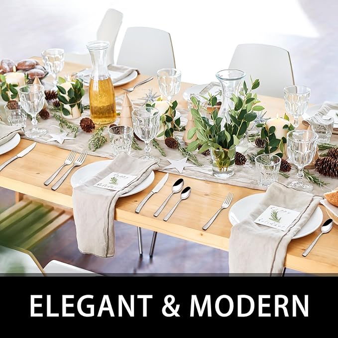- 【COMFORTABLE DESIGN】: This flatware set has a classic silhouette with clean lines and polish-finish surface in all silver, a good choice to go with your existing tableware. The smooth edge of the handle is pleasure to hold, appropriate weight and perfect balance are added to ensure maximum comfort during use.