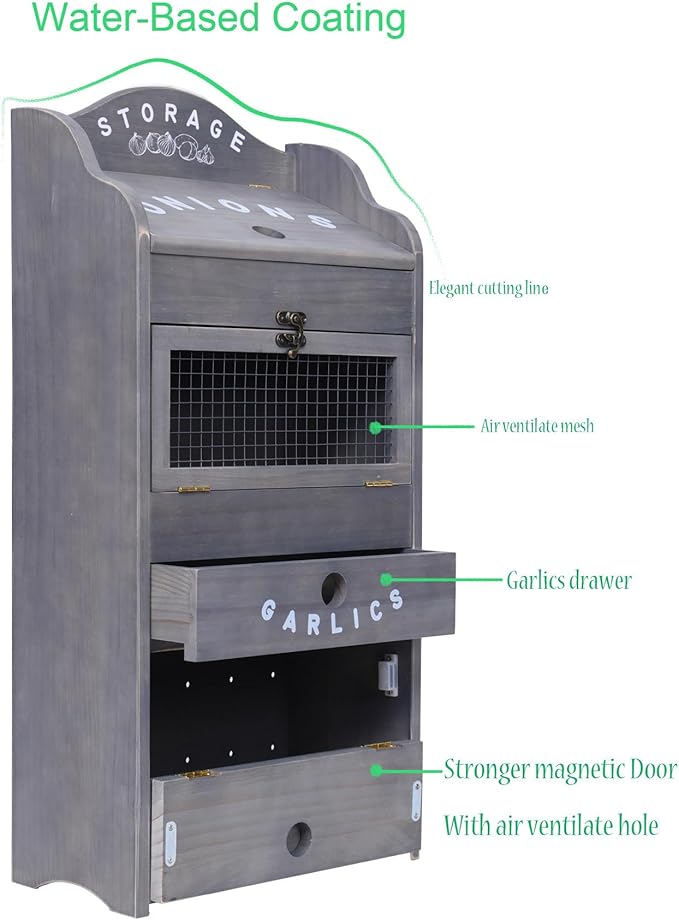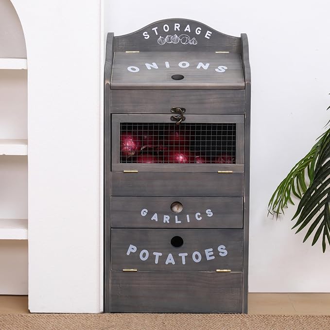 - All-in-One Storage Solution: Combining the convenience of a potato bin, onion box, and garlic keeper, this versatile organizer is the ultimate kitchen companion for any home cook
