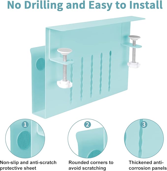 - 【Non-Slip & Anti-Scratch Sheet】On the inner surface of Under Desk Organizer, the bottom and the ends of the clamp have a non-slip sheet, which can help fix the laptop on the Caddy Hanging Desk Storage, the anti-scratch sheet can protect your laptop, tablet and other electronic devices without worry scratching.