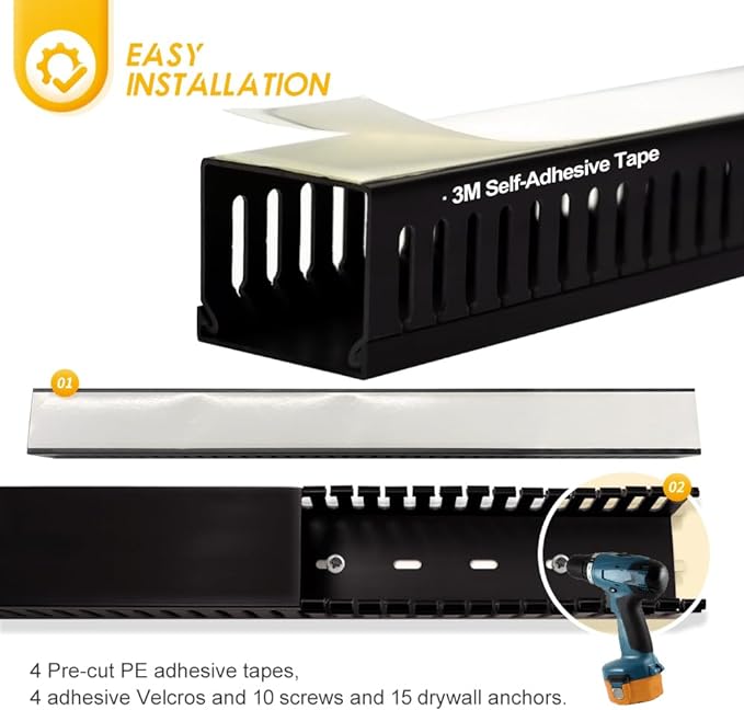 - 【High-quality and Comprehensive Cable Raceway Kit】Our cord hiders are made of eco-friendly UL94 V0 rating PVC material, odorless,durable and fireproof, perfect solution for cable management needs in home, office, industrial factory.