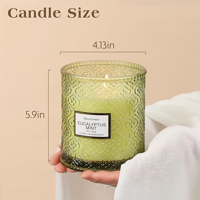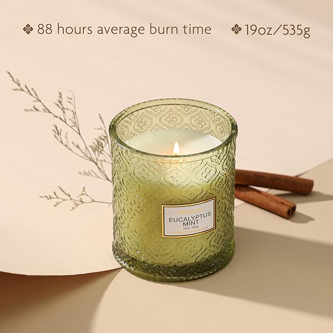 - 💚Eucalyptus Mint Scented Candle - Experience the crisp blend of eucalyptus and mint in our 19oz green glass jar candle. Ideal for invigorating spring and summer atmospheres.