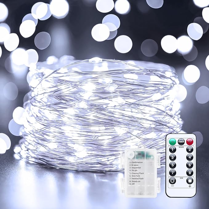 - Brighter & Adjustable Lighting – Compared to standard fairy lights, these upgraded string lights use brighter white LEDs and stronger silver wire. With 10 dimmable settings, you can create a cozy glow or a festive sparkle—customized to any occasion