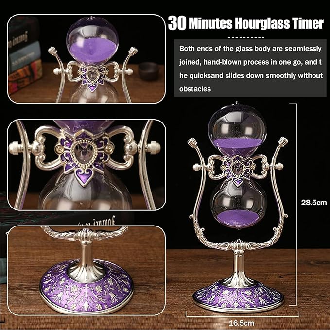 Sanduhr 30 Minuten,Hour Glass,360° flip Metal Vintage Hourglass,Hourglass Decor,for Home Decoration Office Desk Wedding Party Decor Kitchen Timer (Purple Sand)