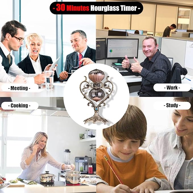 - ●【Gifts and Home Decoration】30 Minute Sand Timer is designed in a classic vintage style, the hourglass timer is perfect for kitchen, office, study room decorations, hourglass timer is also a meaningful gift for your family and friends, it's perfect for your favorite metal hourglass timer collectors! Metal sand timer lovers as a gift, it must be very surprised and loved to receive it.
