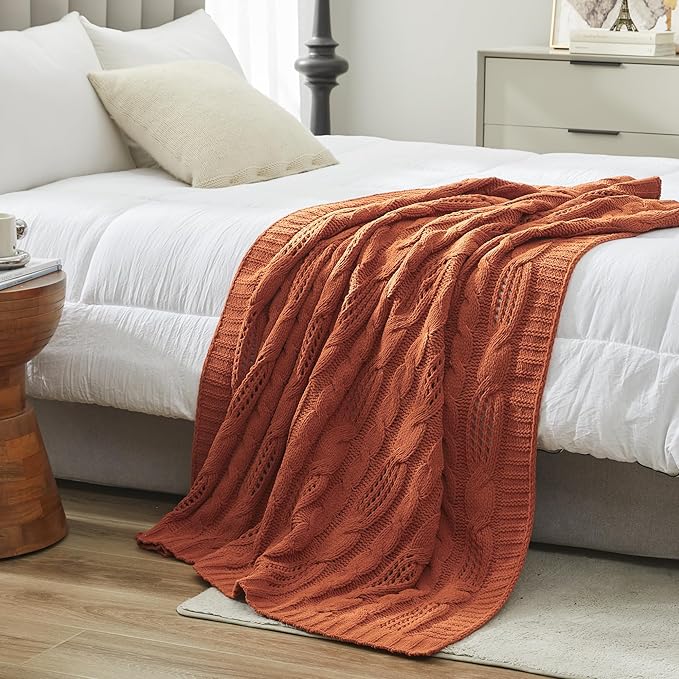 Amélie Home Chunky Knit Throw Blanket, Dual-Sided Soft Chenille Breathable Cable Knitted Blanket for Couch, Farmhouse Decorative Throw for Sofa & Chair, 50"x60", Burnt Orange