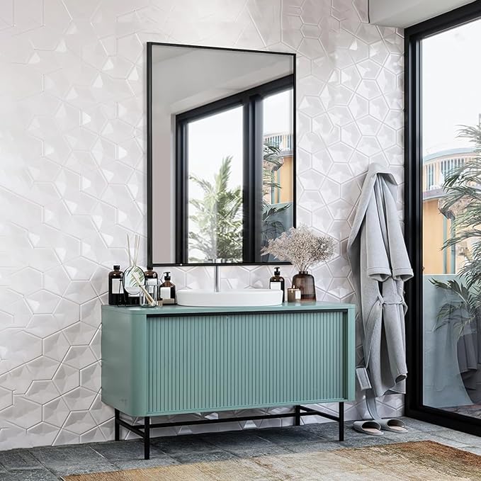 - 【Decortive Wall Mirror】 The black frame mirror 30x40 inch large mirror is ideal choice as a bathroom mirror, vanity mirror, shower mirror. it is also a great decortive wall mirror, you can use it in entray, living room ect. it will add light and expand visual space, make your home more eye-catching.