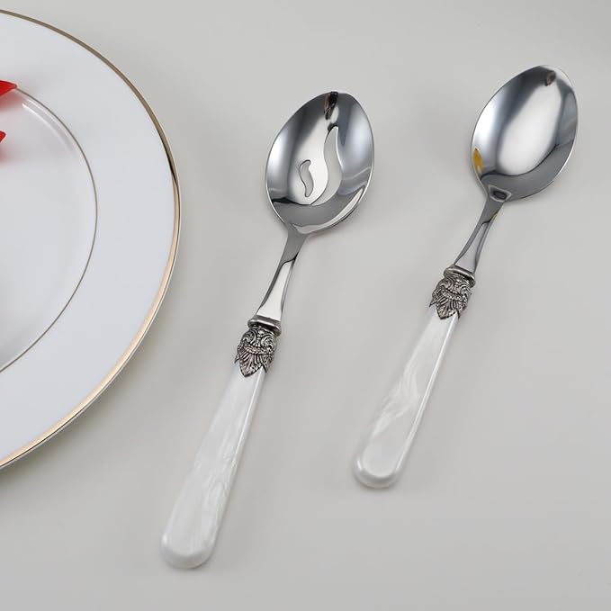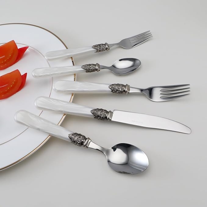 REVERIE Collection 18/10 Stainless Steel Vintage Flatware set,Sliverware set,Dishwasher safe (65, Pearl White)