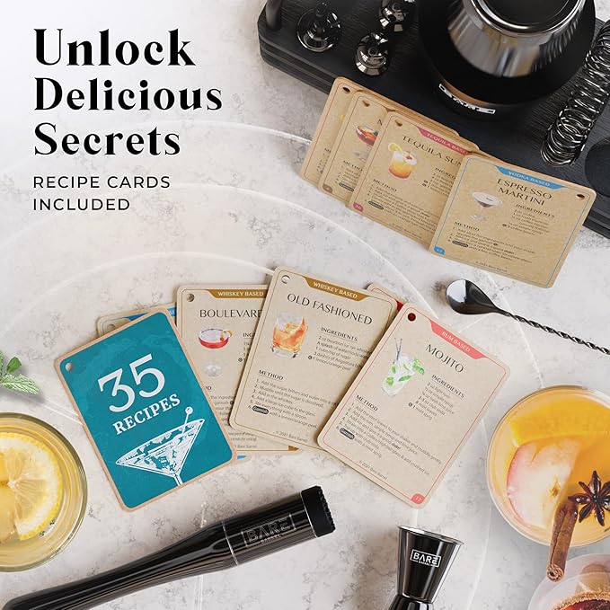 - ✔ ENDLESS TASTY RECIPES » Includes 35 recipe cards, so whether you fancy the taste of whiskey, vodka, rum, gin or tequila, you're covered! Enjoy an Old Fashioned, Margarita, Martini, Mojito...