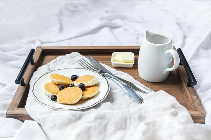 - ✔ ELEVATE YOUR HOME DECOR: Our sleek and rustic wood trays are guaranteed to provide an elevated and modern design to your living or kitchen space. Our trays are handcrafted to furnish you with a unique and tasteful design. VERSATILE USE: From serving breakfast in bed or appetizers for guests to displaying elegant decor, our strong metal handles and gorgeous pinewood make our serving trays versatile for your many needs. Even use our trays to store jewelry or perfumes.