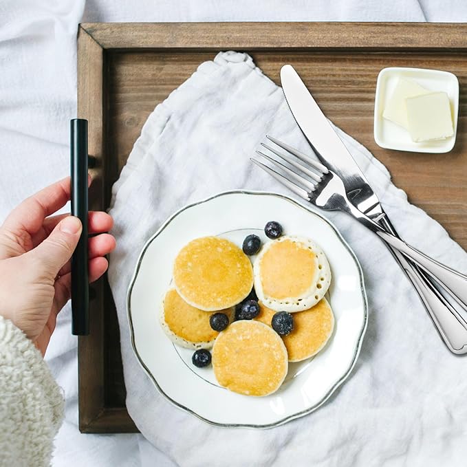 - ✔ REAL WOOD AND METAL HANDLES: Our trays are crafted in house with genuine high-quality pine wood for a sustainable and high-performance design that will last forever. With sturdy real metal handles, you can expect a reliable and safe transfer of food and decor with a sleek matte style.