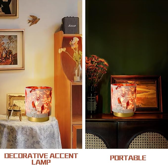 7'' Battery Operated Lamp Timer, Decorative Cordless Table Lamps for Area No Plug, Battery Powered Accent Lamp for Kitchen/Entryway/Corner Shelf/Living room, Nightlight For Bathroom/Bedroom(Red)