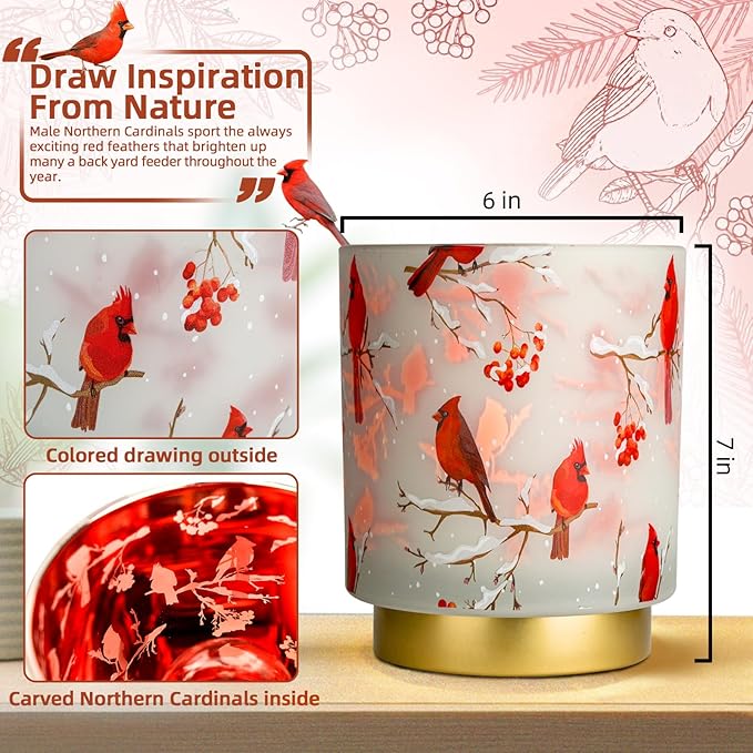 - Inspired By Nature: Birds can always be a great subject for dinner table conversation and arguments. Male cardinalis cardinalis sport the always exciting red feathers. To manufacture the cardinalis cardinalis vivid and simulated on the heavy glass surface, Our designer develop a new technique-Double-Sided Design of Painting and Carving, you will be surely amazed by the touch since it is inside engraved texture