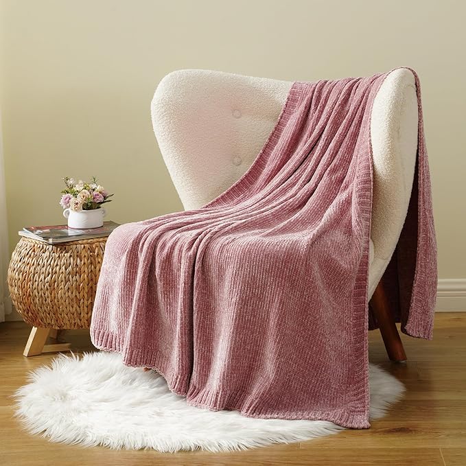 - VERSATILE & COZY: This pink chenille throw blanket is soft and comfortable, large enough to cover two people. You can wrap yourself up while watching TV on the sofa or relaxing on bed. Widely usage makes this cozy throw blanket a great gift option for your friends and families.