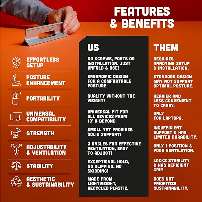 Steepy Portable Laptop Stand for Desk – Adjustable Height, & Portable Laptop Holder – Ergonomic Computer Stand for Cooling & Comfort – Slip-Proof, Sturdy Design – Universal Fit for 13-17 Inch Devices
