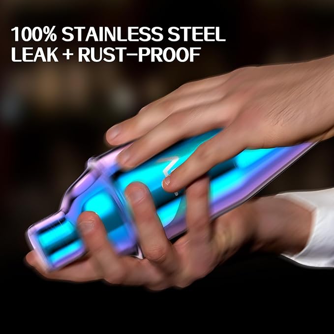 IOV Cocktail Shaker Bar Set, 24oz Martini Shaker with Built-in Strainer, Bar Tool Kit with Recipes Booklet, Professional Stainless Steel Large Bartender Drink Shaker Margarita Alcohol Mixer-Rainbow