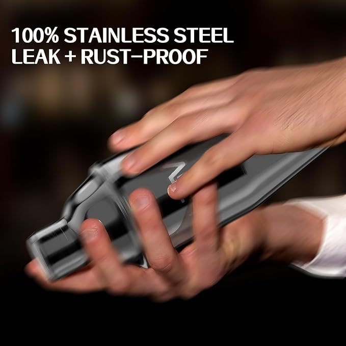 - LEAK PROOF AND DURABLE: This cocktail mixer is made of high-quality, rust-proof, and food-grade stainless steel that makes it perfect for creating mouth-watering beverages at every party, while remaining shiny for years to come. The leak proof lid prevents the drinks from spilling, and is also easily detachable. The entire cocktail making kit is dishwasher safe.
