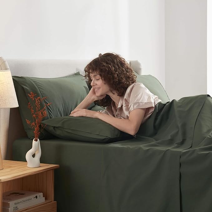 Nestl Extra Deep Queen Sheet Set - 6 Piece Breathable & Cooling Sheets - Hotel Luxury Bedding Set w/18-24 Inch Deep Pockets - Easy & Secure Fit - Super Soft, Wrinkle Free & Comfy - Olive Green