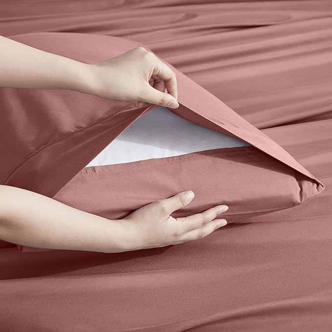 Nestl Extra Deep Split King Sheet Set - 7 Piece Breathable & Cooling Sheets - Hotel Luxury Bedding Set w/18-24 Inch Deep Pockets - Easy & Secure Fit - Super Soft, Wrinkle Free & Comfy - Pink Clay