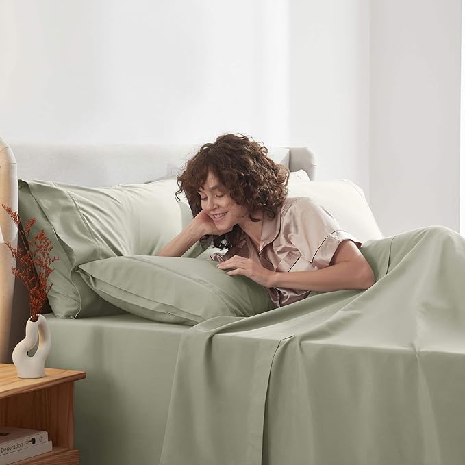 Nestl Extra Deep Cal King Sheet Set - 6 Piece Breathable & Cooling Sheets - Hotel Luxury Bedding Set w/18-24 Inch Deep Pockets - Easy & Secure Fit - Super Soft, Wrinkle Free & Comfy - Light Sage
