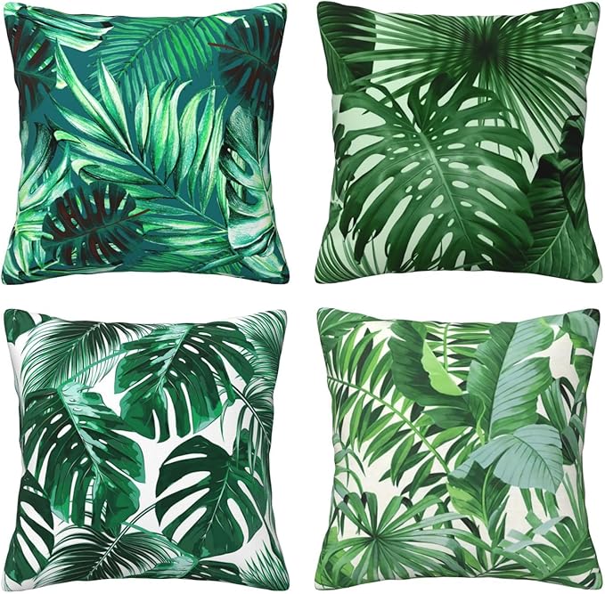 Tropical Green Leaves Throw Pillow Covers 18x18 Set of 4 Palm Leaf Decorative Throw Pillow Cushion Cases Cover for Sofa Couch Car Home Decor