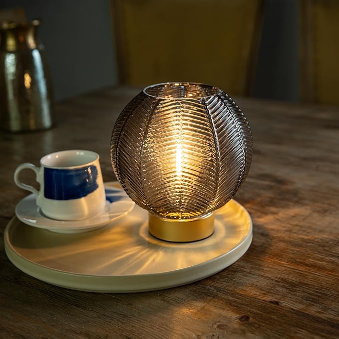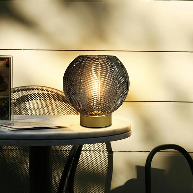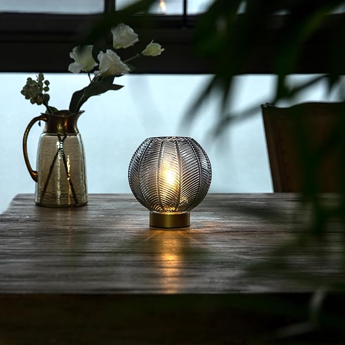 - 🌿【MODERN GLASS BATTERY LAMP】 Our battery operated lamp is made of high quality glass, which features a modern elegant style and is suitable for all styles of home decor. There are 5 colors available to choose — Red, Green, Amber, Gold, Grey. You can decor your home by putting this modern lamp any where and when you turn on the cordless lamp, it emits beautiful luminous light and adds romance to your home. Must be a nice addition for your bedroom and hallway...