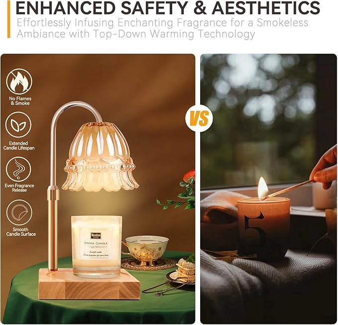 - 【Safe and Environmental】Scented candles are a necessity in our lives as they create a comfortable and pleasant atmosphere. However, statistics show that many house fires in the United States are caused by candles. Our candle warmer lamp provides a safer alternative to traditional candle burning. The candle lamp uses heat to melt the candle from top to bottom (without producing an open flame), so you can enjoy the beauty and fragrance of candles without any risk.