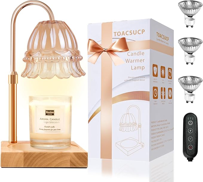 - 【Height Customization for All Candle Sizes】Featuring a 5.5-inch wooden base and an adjustable lamp pole, the candle lamp warmer is designed to accommodate candles of varying sizes with elegance.
