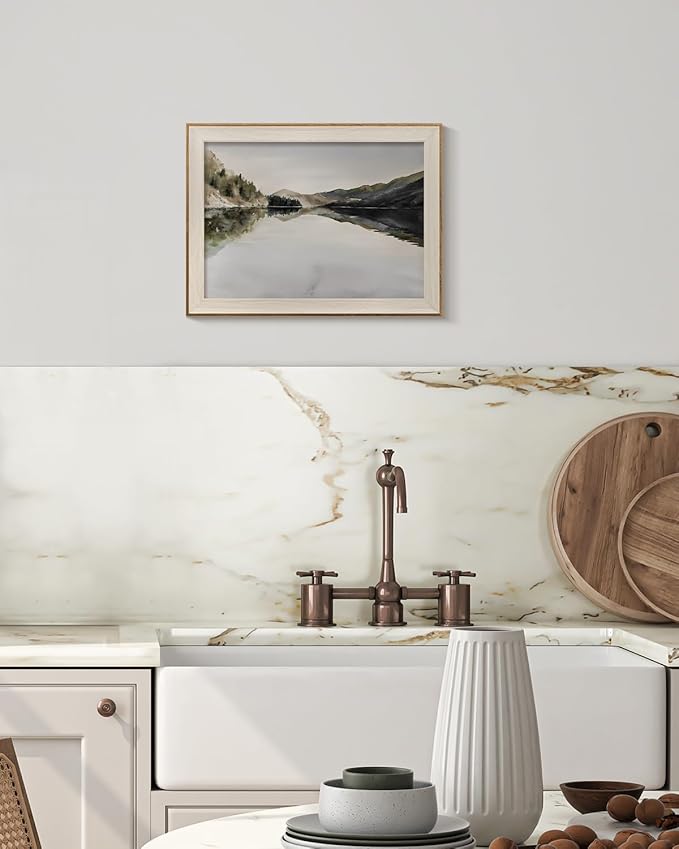 InSimSea Framed Canvas Wall Art Mountain Reflection Decor Vintage Wall Art Mountain Range Nature Wilderness Art Decorative Rustic for Living Room, Bedroom, Office Wall Decor 12x16In