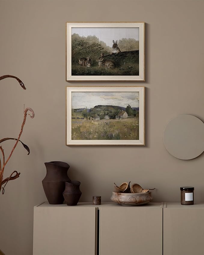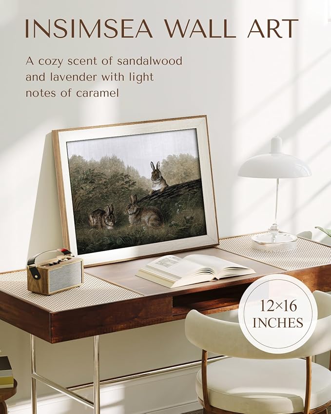 InSimSea Framed Canvas Wall Art of Rabbit Animal - Vintage Easter Bunny Room Decor, Aesthetic Wall Art Home Decor Oil Painting for Living Room Bedroom Botanical Landscape Farmhouse Wall Decor 12x16In