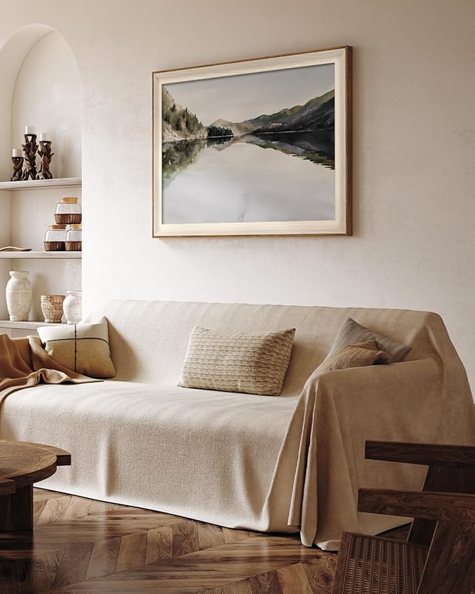 InSimSea Framed Canvas Wall Art Mountain Reflection Decor Vintage Wall Art Mountain Range Nature Wilderness Art Decorative Rustic for Living Room, Bedroom, Office Wall Decor 24X36In