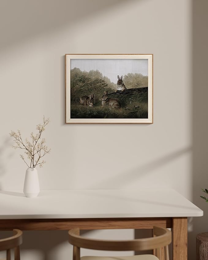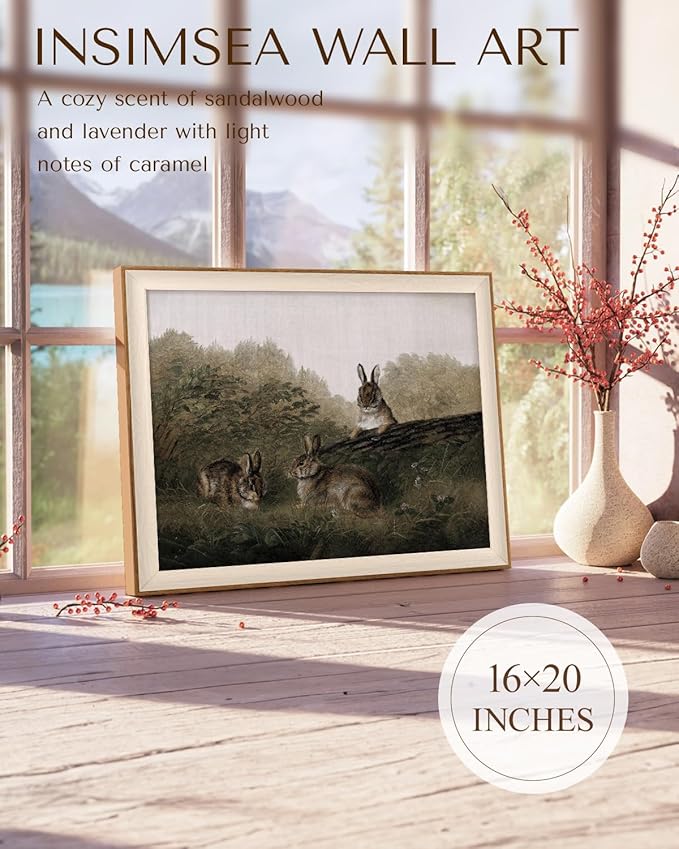 InSimSea Framed Canvas Wall Art of Rabbit Animal - Vintage Easter Bunny Room Decor, Aesthetic Wall Art Home Decor Oil Painting for Living Room Bedroom Botanical Landscape Farmhouse Wall Decor 16x20In